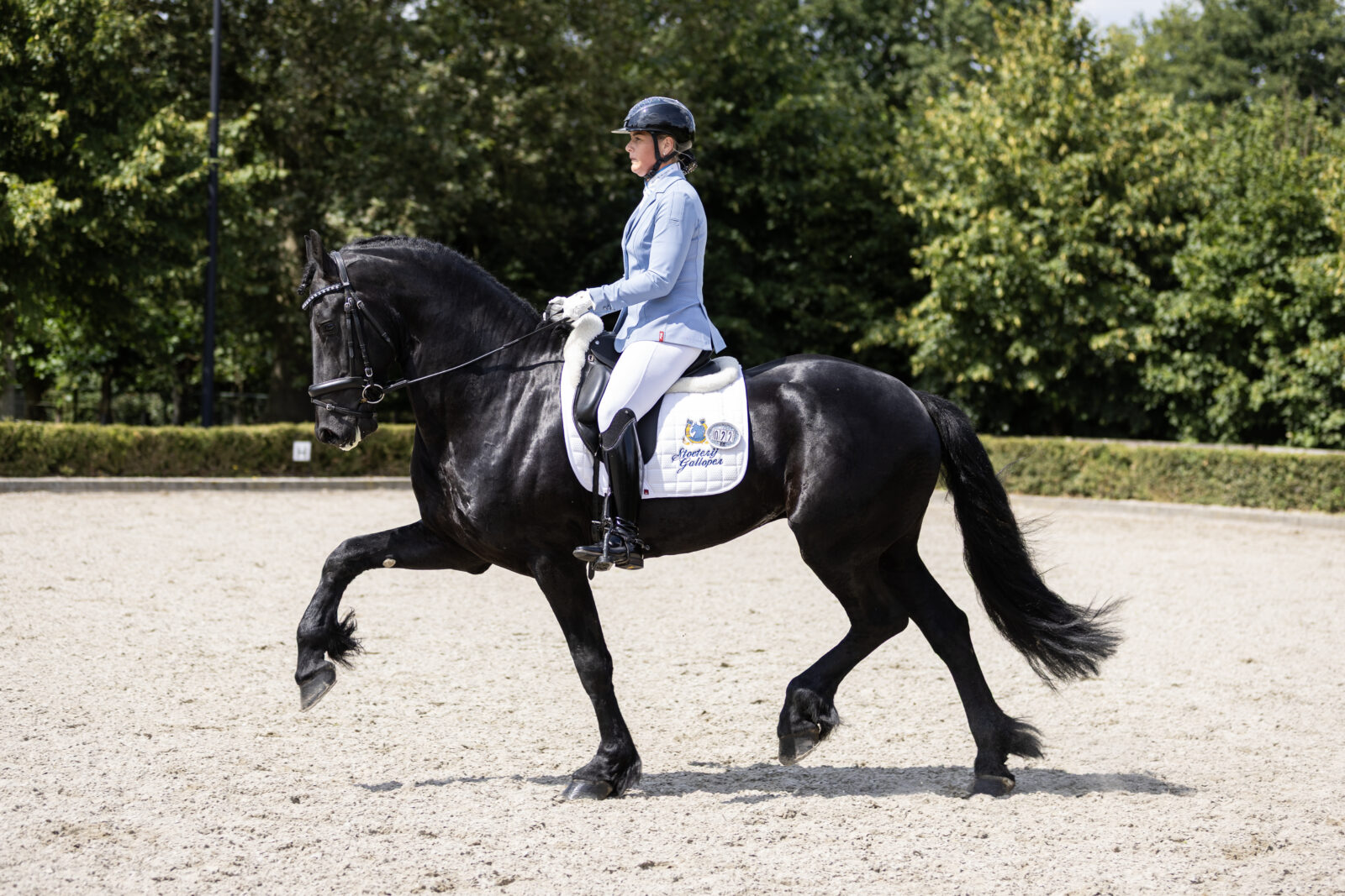 Ook de tweede selectiewedstrijd van de Fryso Florian Bokaal dressuur op zondag 3 augustus in Lunteren leverde weer fijne verrichtingen en mooie punten op. In totaal wisten 16 combinaties een ronde verder te komen. Vijf merries en elf hengsten behaalden 65 punten of meer én minimaal een 6 op hun basisgangen. De topscore van de dag was voor Mattie P fan Dulve Ster (Pier 448) met Danielle Heijkoop die 87,8 punten lieten noteren door juryleden Corrie Rave en Marlon van Wissen.
